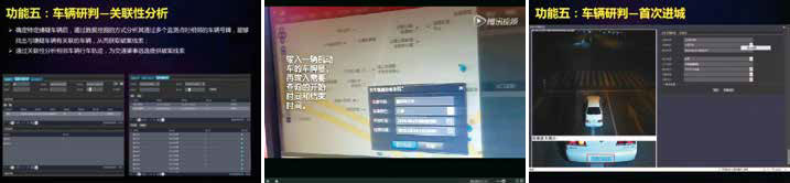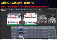 该平台可通过时间、地点、车身颜色、车型等一系列数据的分析,判断车辆是否为套牌车。例如车牌为冀HTXX 的出租车在间隔很短的时间内,分别被开发区管委会由东向西方向、交警支队由北向南方向的电子警察抓拍,由于时间间隔很短,同一车牌的车辆不可能出现在物理位置较远两个地点,通过图片放大,发现该车辆有差别。则可判定为套牌车辆。