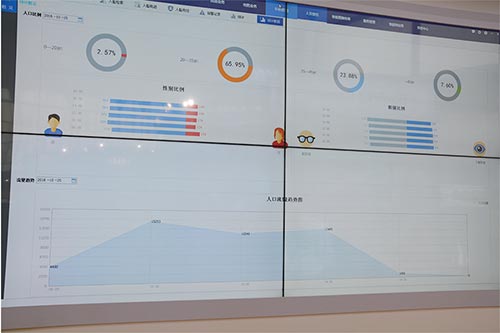 在这个非常直观的数据统计图表上,可以非常清楚地看到:进入这个展台的人,在某个时间段的总次数,以及这些观众的年龄结构、眼部遮挡等详细情况。