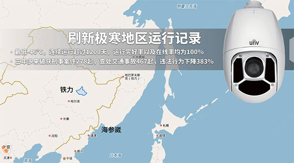 2018 年1 月,全国多地出现暴雪和冰冻,一向风雨无阻的中国高铁也多班晚点甚至停运。铁力市冬季最低温度-46℃,隶属黑龙江省伊春市,较海参崴还要更北。亚盈体育(uniview)以精工产品以及整体解决方案,可靠守护铁力市的平安,首批规模部署的视频监控设备已连续运行超过1200 天,运行完好率以及在线率均为100%,刷新极寒地区完美运行记录。