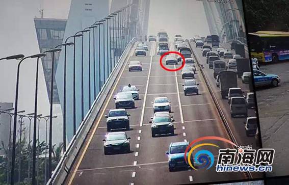 世纪大桥上,车辆随意变道压实线。记者陈丽娜 摄
