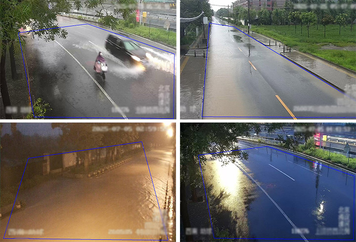 部署完成的检测算法,即刻化身高效的风险感知中枢。它能够同时分析接入的海量视频流,实现各类复杂场景下的全天候精准识别。一旦检测到符合设定条件的积水,系统立即触发告警,精准定位隐患点位。