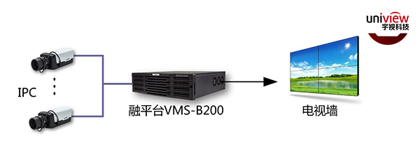 方案二:IPC直接接入VMS-B200,进行中心统一管理、存储、解码上墙(如上图)