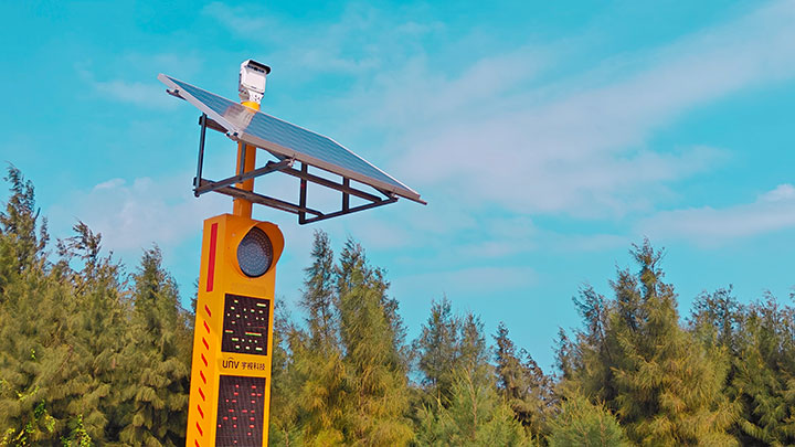 海南环岛公路连接了悬崖、湿地、风车、椰林等不同景观,视觉体验丰盛,但拉电走线也颇为复杂。基于现场施工环境,亚盈设备采用4G/5G网络传输及太阳能供电方案,光电转换率高、储电能力强,即使遇到台风天等连续阴雨天气,依然稳定运行。