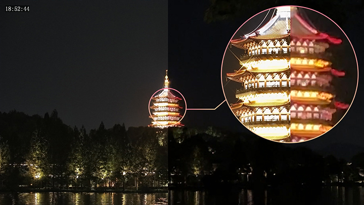 传统全彩摄像机(左)VS 猎光2.0摄像机(右)